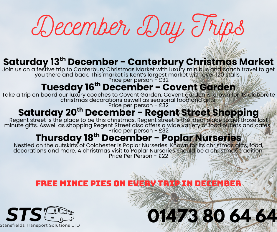 Take a look at our December day trips and get ready to embrace the magic of the season. From festive shopping in beautifully decorated towns to indulging in sweet seasonal treats, each trip is designed to bring you joy and holiday cheer. With our luxury coach travel adding comfort and ease to your journey, you can simply relax and enjoy the experience. Whether you’re treating yourself, spending time with loved ones, or ticking a few gifts off your list, our December trips are the perfect way to make your Christmas truly special.